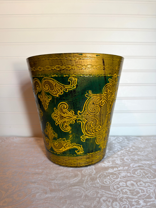 Made In Italy Florentine Green & Gold Wastebasket