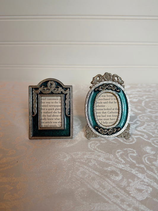 Pair of Mini Teal Enamel & Silver Metal Tabletop Frames