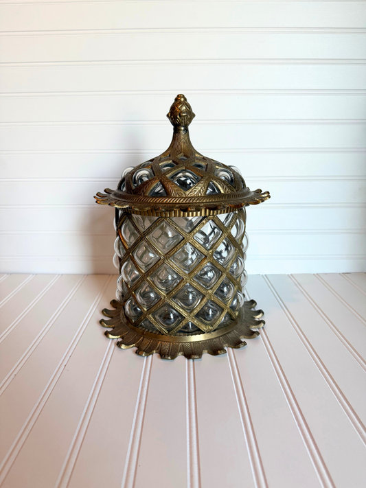 Large Brass & Bubble Glass Apothecary Jar