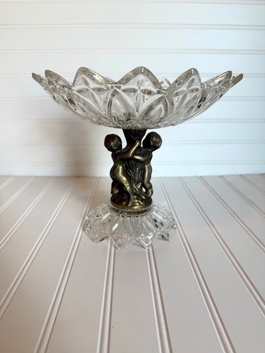 Hollywood Regency Cut Glass Cherub Pedestal Dish