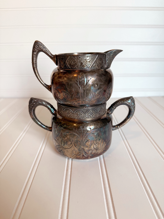 Silver Plated Etched Sugar & Creamer Set