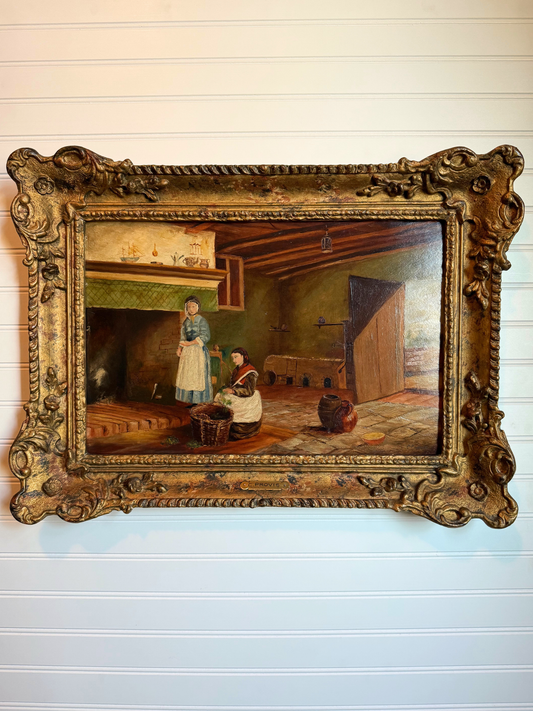 19th Century Cottage Interior Oil Painting
