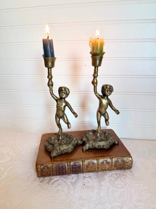 Brass Cherub Candle Holders
