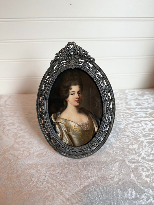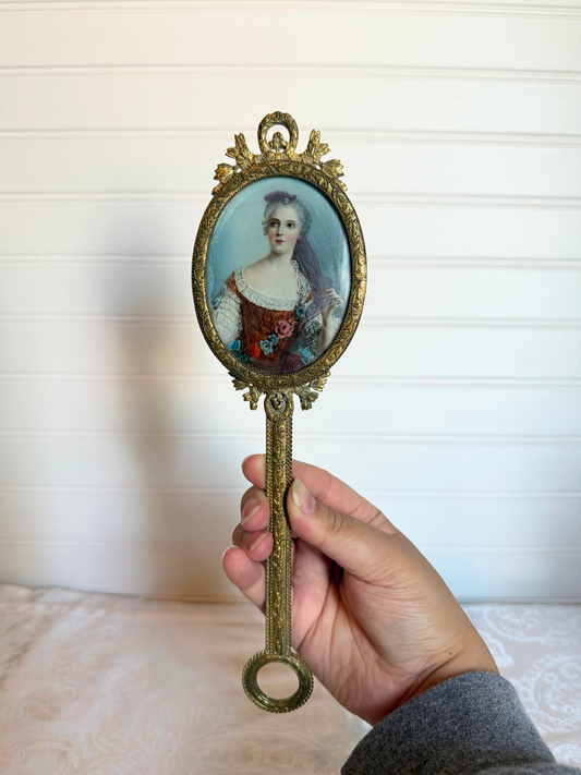 19th Century Bronze Hand Mirror with Portrait Painting of Sophie of France