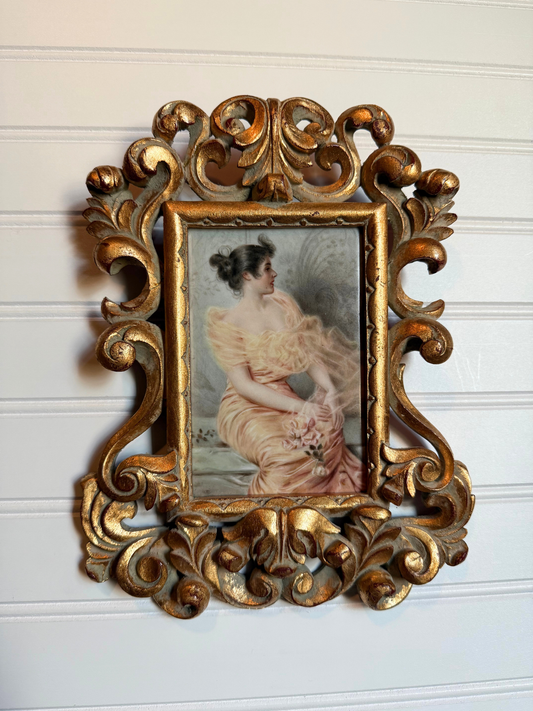 Lady in Peach Dress Painting on Porcelain