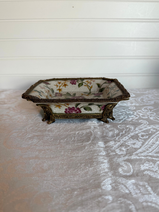 Floral Porcelain & Bronze Trinket Dish