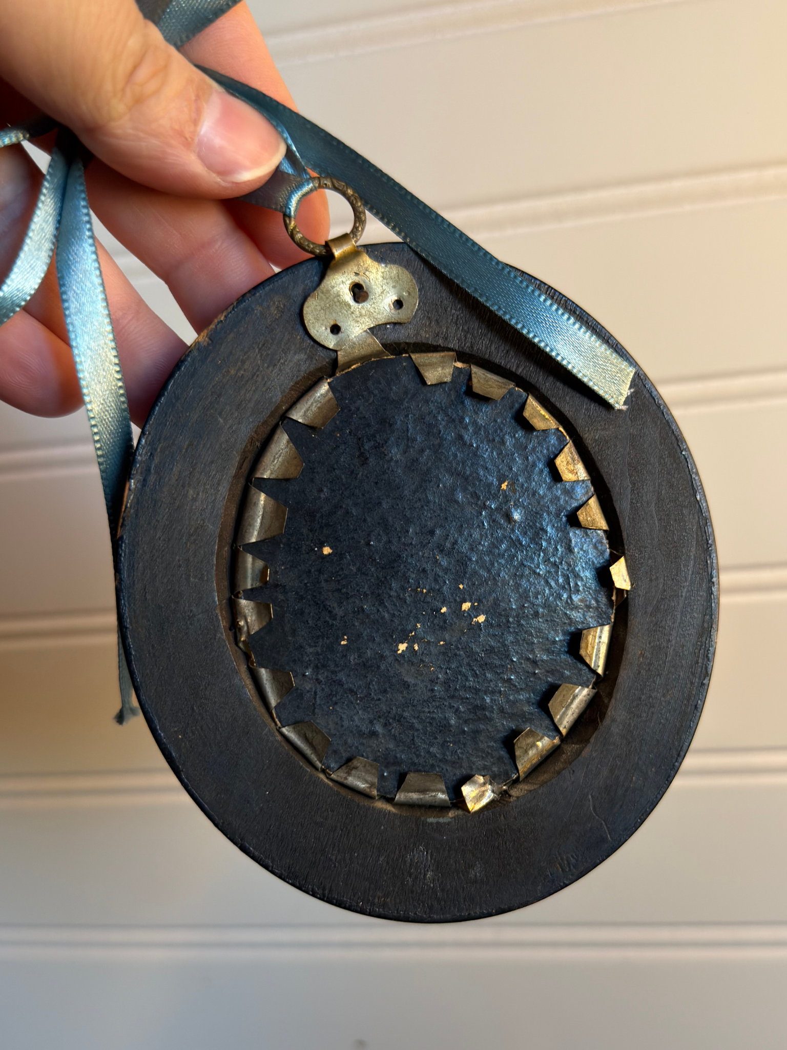 This 19th-century silhouette portrait of a gentleman is displayed in a black wooden frame with a gold brass inner border and comes ready to hang. Silhouette portraits were a popular and affordable form of portraiture in the 18th and 19th centuries, created by cutting a subject’s profile from black paper to capture their likeness with refined simplicity. The frame’s wood construction and brass detailing complement the classic black silhouette, and the removable blue satin bow adds a subtle, decorative touch. A timeless piece that highlights both historic artistry and elegant design.