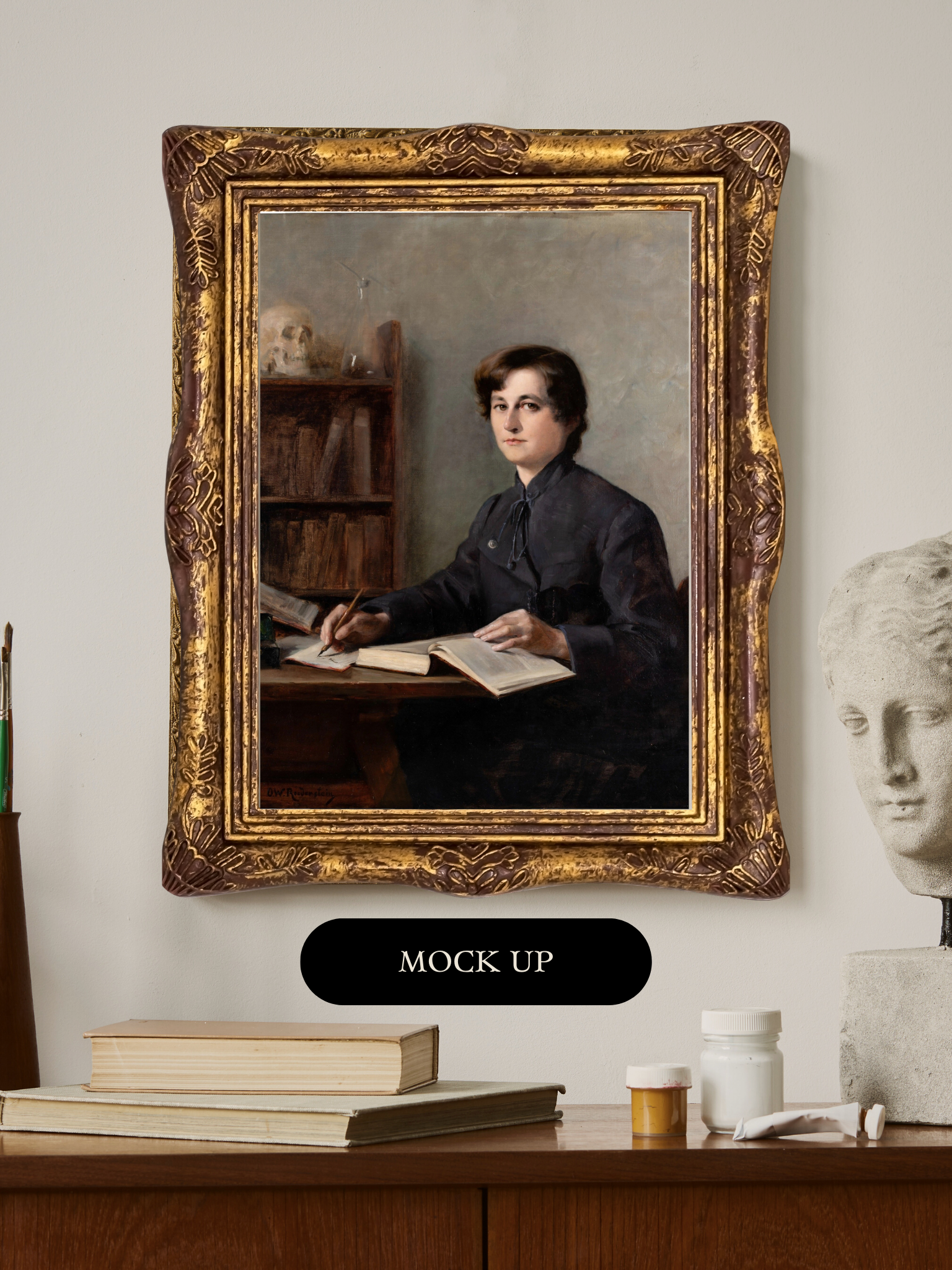This portrait presents Dr. Elisabeth Winterhalter, a pioneering female doctor, with a composed and thoughtful expression. Painted by Ottilie W. Roederstein, the work highlights Winterhalter’s groundbreaking achievements in medicine and reflects Roederstein’s skill in capturing the character of her subjects.