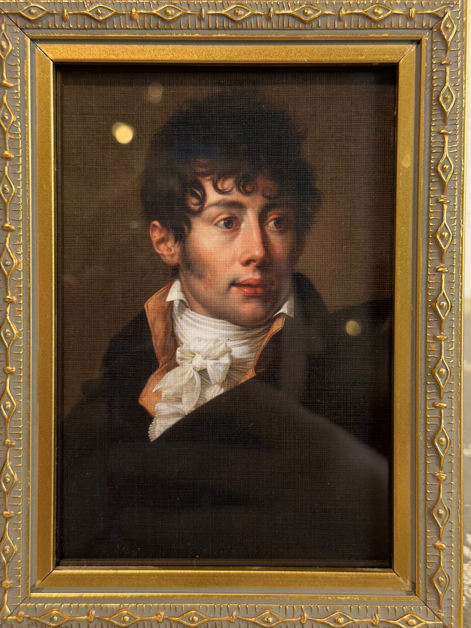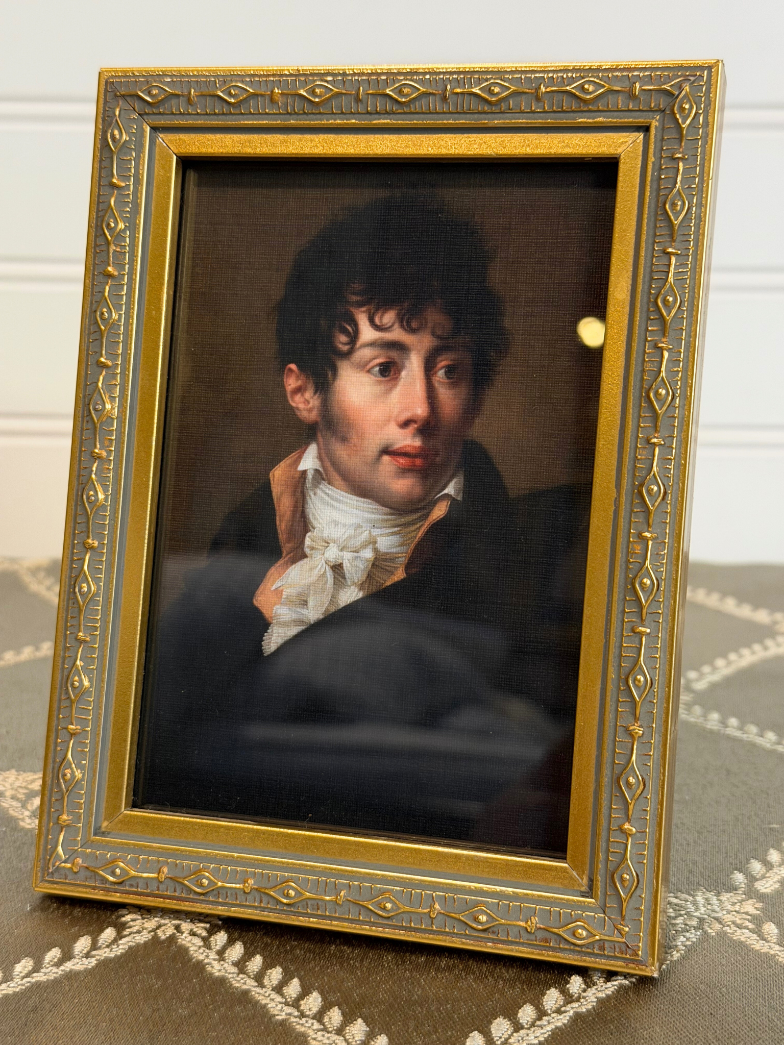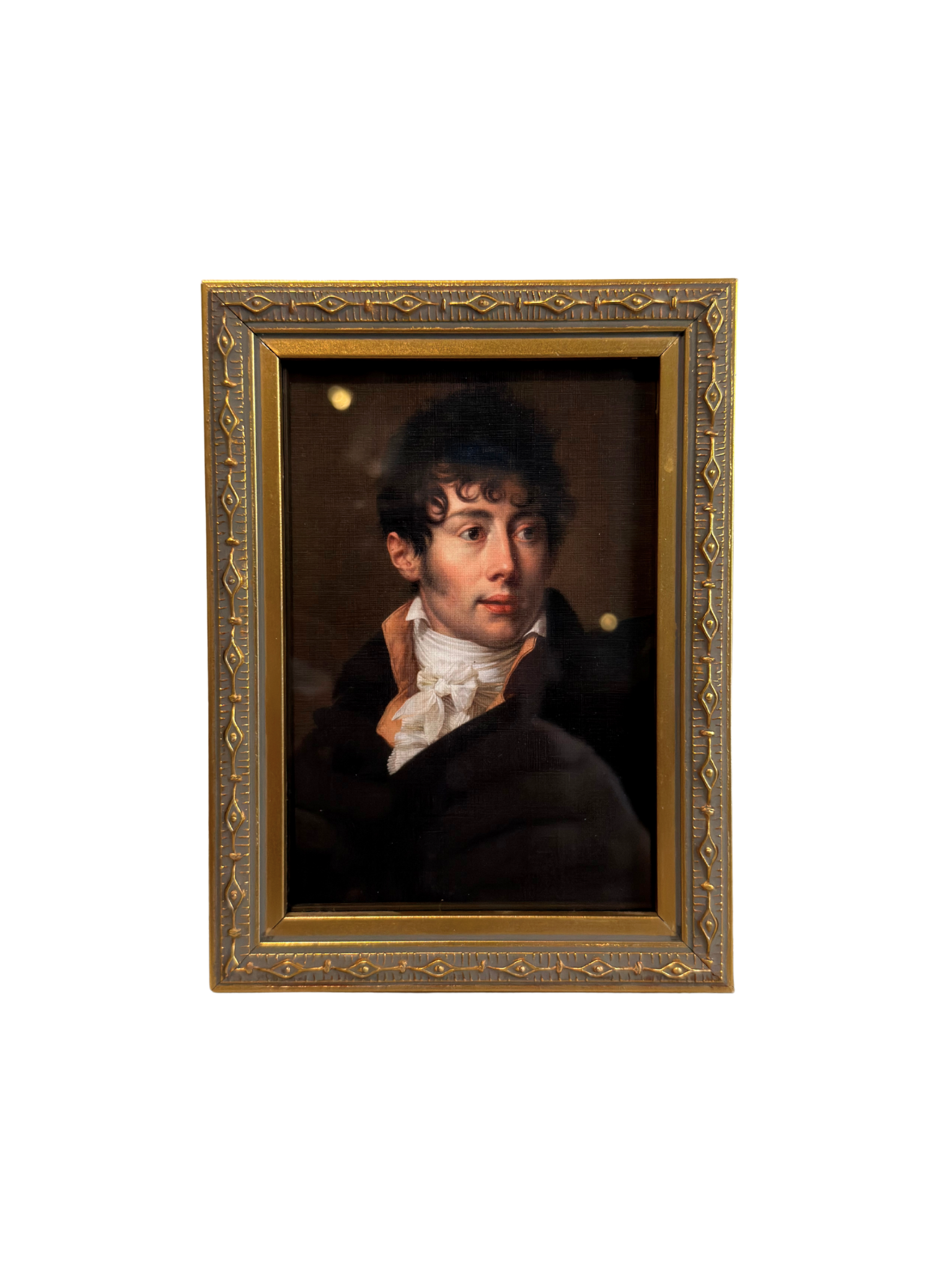 This print features Michał Bogoria Skotnicki (1775–1808), a Polish nobleman who not only served his country but was also an avid collector and artist in his own right. He trained in Dresden and created paintings that were well regarded. The portrait is originally painted by the French artist François‑Xavier Fabre. The print is set in a gold ornate frame and is ready to hang.