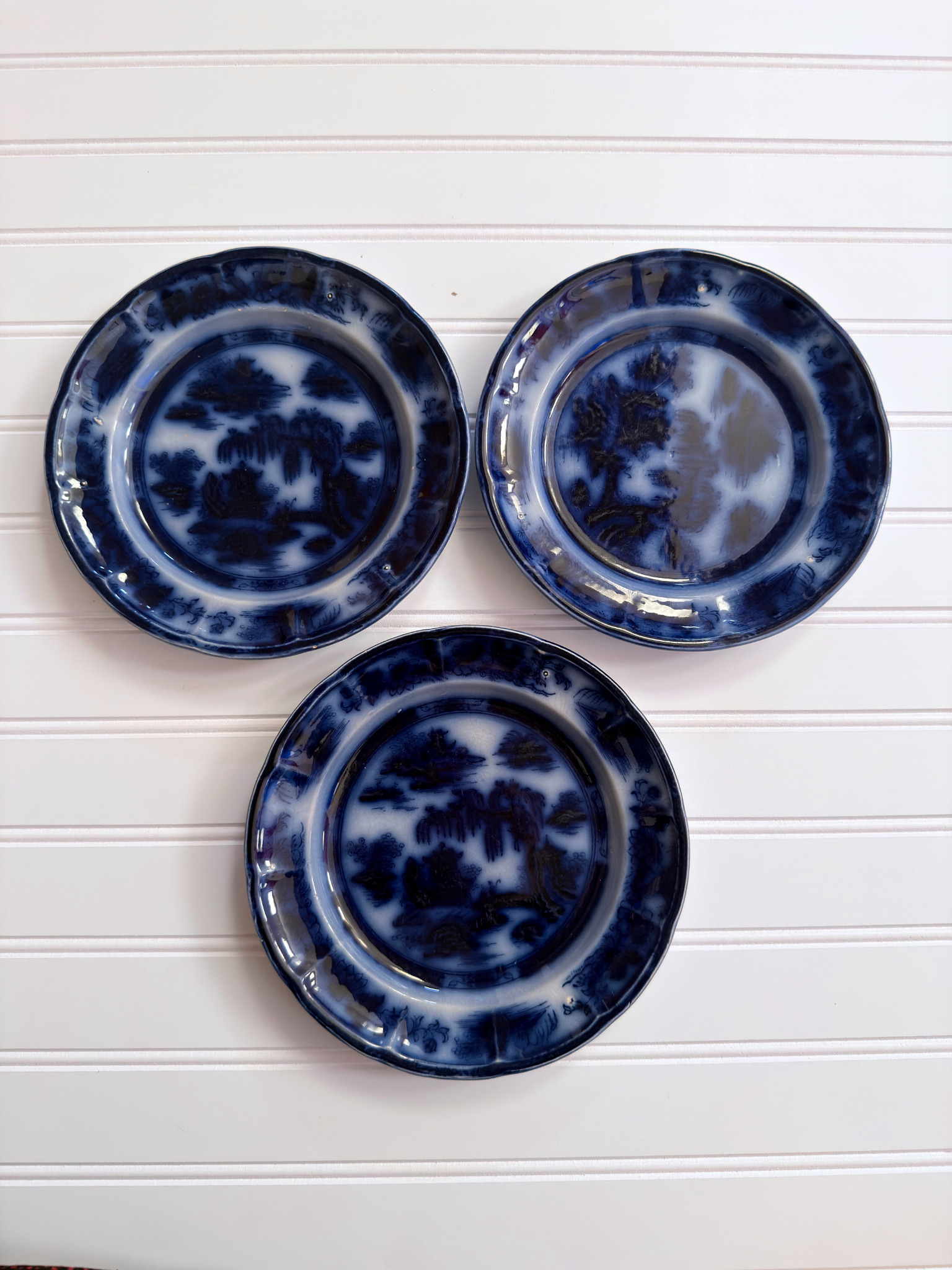 - All flow blue pieces are antique, many over 100 years old, so some wear such as chips, crazing, or scratches is to be expected and part of their story.