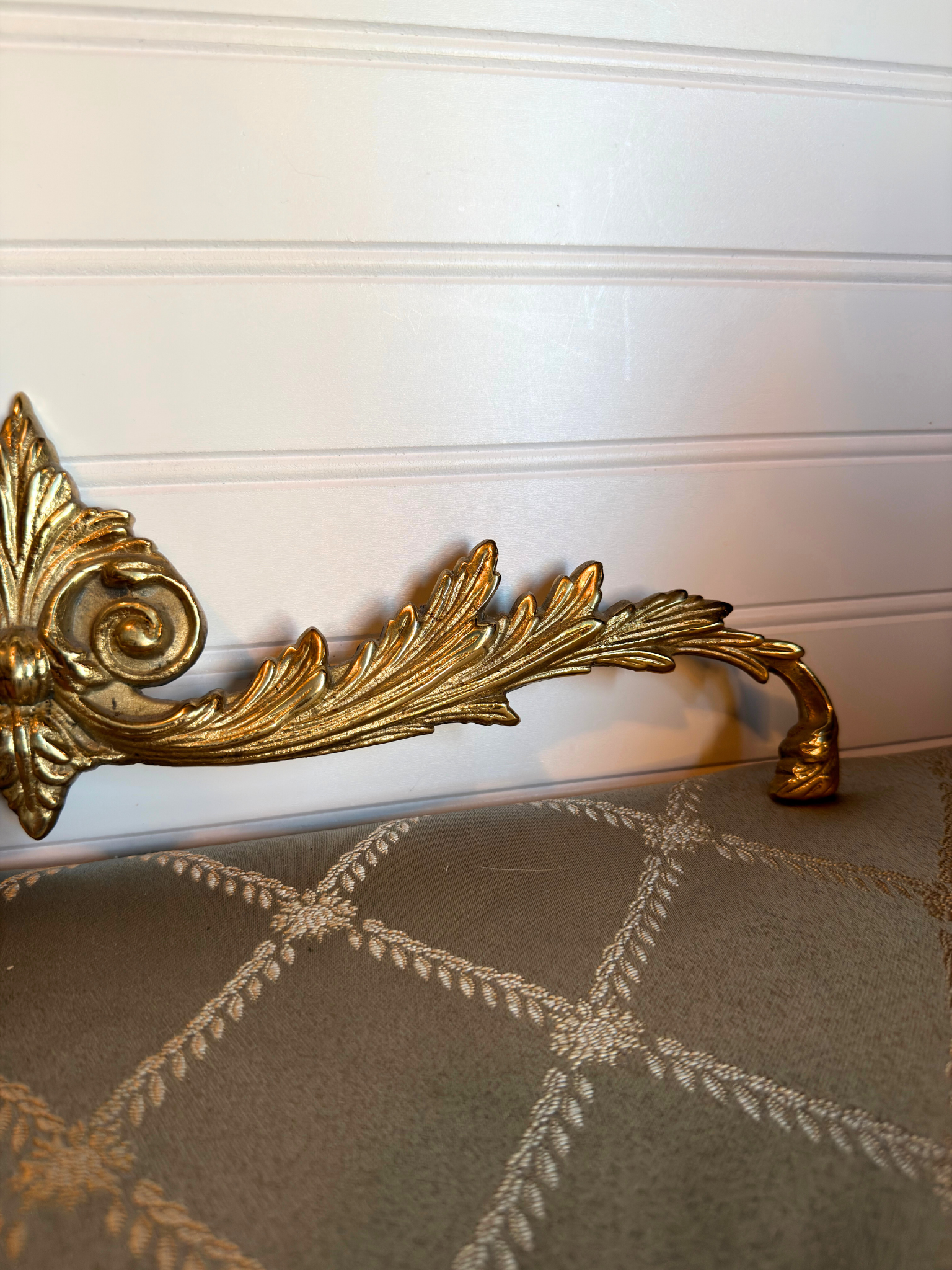 This ornate brass wall appliqué features intricate detailing, making it a versatile accent for your home décor. Perfect for adding a decorative touch above a painting or print, filling in a space on a gallery wall, or enhancing the top of thinner doors, it brings a subtle yet elegant detail that complements a variety of styles.
