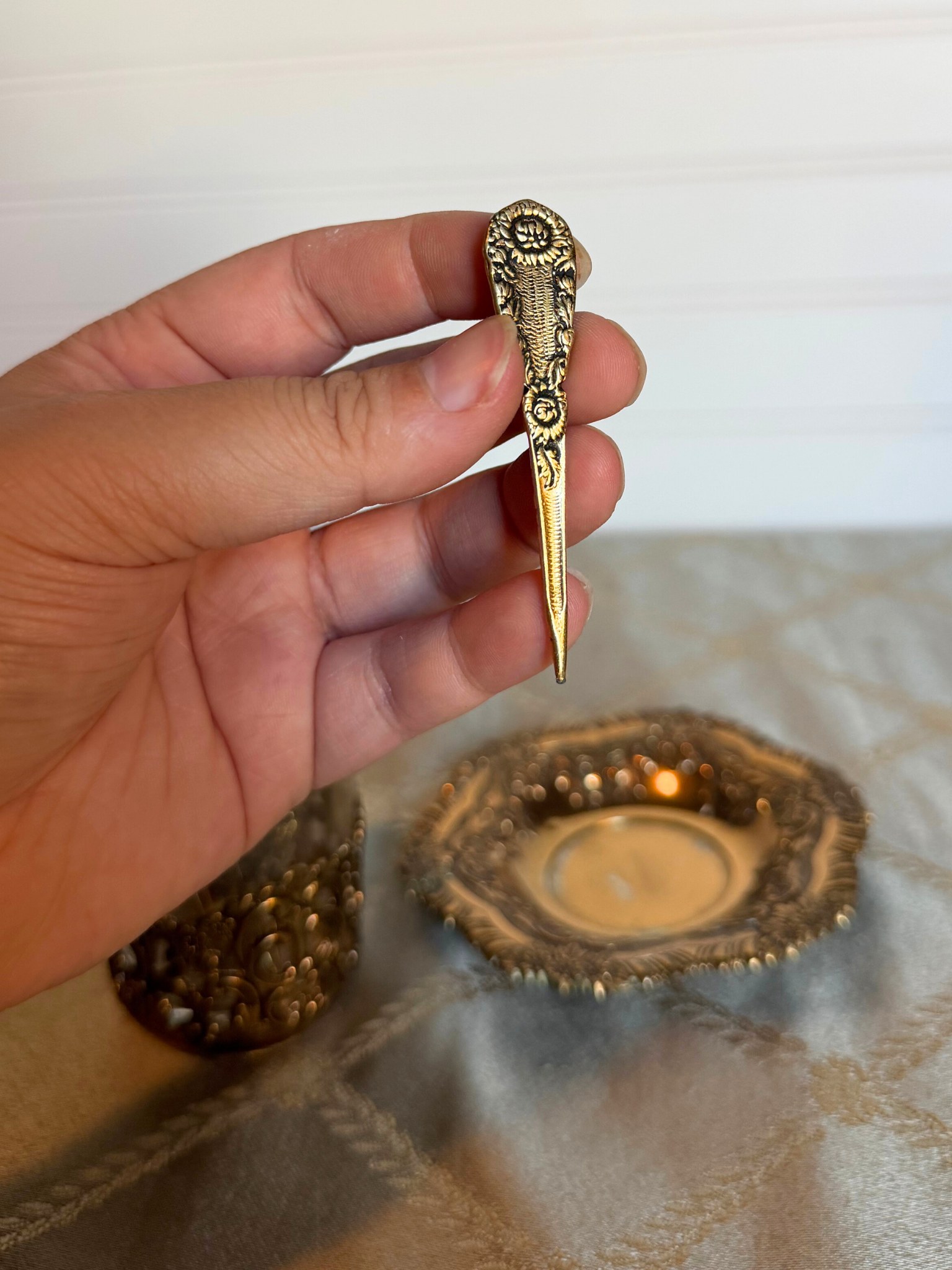 This is a vintage small ornate “Made in Japan” tea cup holder and saucer set, complete with charcuterie board toothpicks. This charming set adds a touch of elegance to any charcuterie spread, serving as both a functional and decorative piece for entertaining.